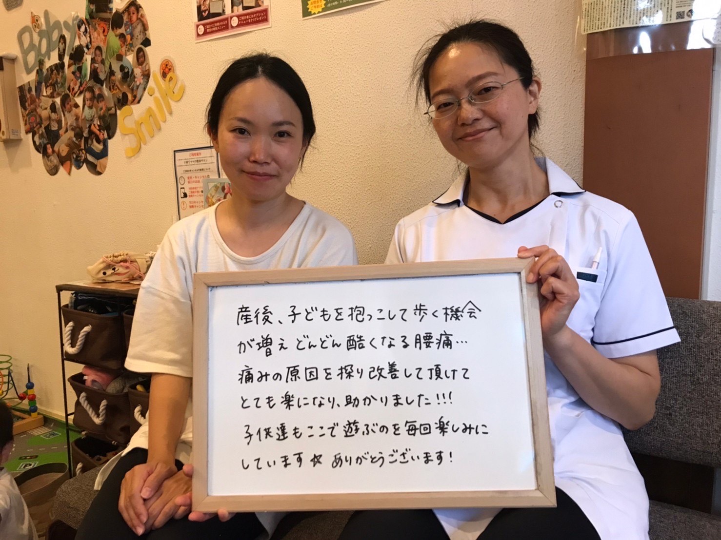 実際に通われたママから、こんな声をいただいています。 「ほぼ初めて整体という物に通い始めましたが、
