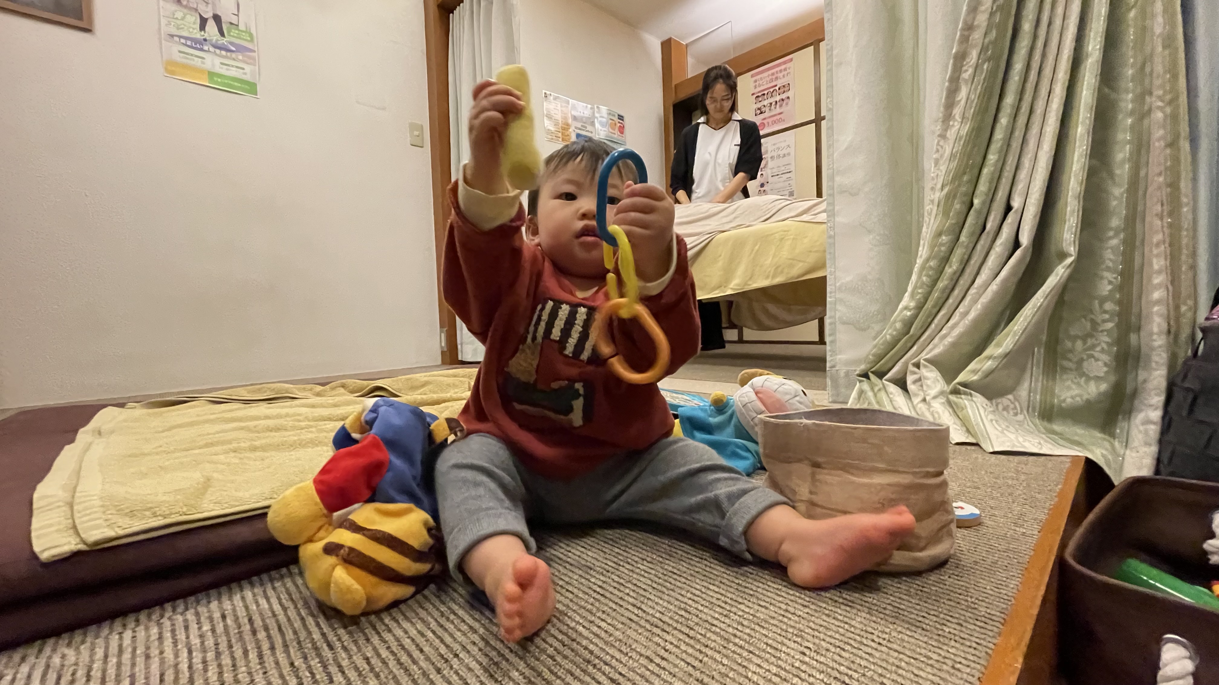 しかし施術中の会話から、抱っこで蓄積した背中の硬さ、